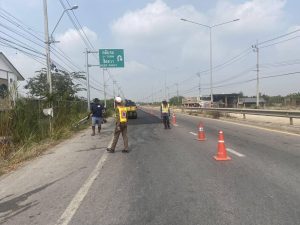 วันนี้( 19 ก.พ.68 ) งานจราจร ร่วมกับเจ้าหน้าที่ทางหลวงชนบทสมุทรปราการ ได้ดำเนินการซ่อมแซมถนนบริเวณที่ชำรุด