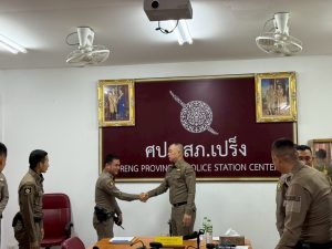 เมื่อวันที่ 24 เม.ย. 2568 เวลาประมาณ 20.00น. แนะแนวทางในการปฏิบัติงาน กำชับให้ปฏิบัติตามนโยบายของ ตร. และ ภ.1 โดยเคร่งครัด พร้อมนี้ได้มอบรางวัลเพื่อเป็นขวัญกำลังใจในการปฏิบัติหน้าที่ และชมการสาธิตฝึกทบทวนการระงับเหตุบุคคลคลุ้มคลั่ง(กรณีมีสาธิต) ณ สภ.เปร็ง โดยมี พ.ต.อ.พลเทพ นันทสำเริง ผกก.สภ.เปร็ง, พ.ต.ท.ปราสาท สินประโคน รอง ผกก.ป.สภ.เปร็ง และเจ้าหน้าที่ที่เกี่ยวข้องเข้าร่วม