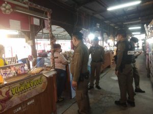 พ.ต.ท.พีรศักดิ์ เจริญพันธ์ รอง.ผกก.ป สภเปร็ง เปร็ง 20 พร้อมกำลังสายตรวจ 121 ว.4. ป้องกันเหตุ ตลาดคลองสวน100ปี