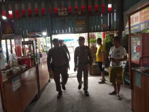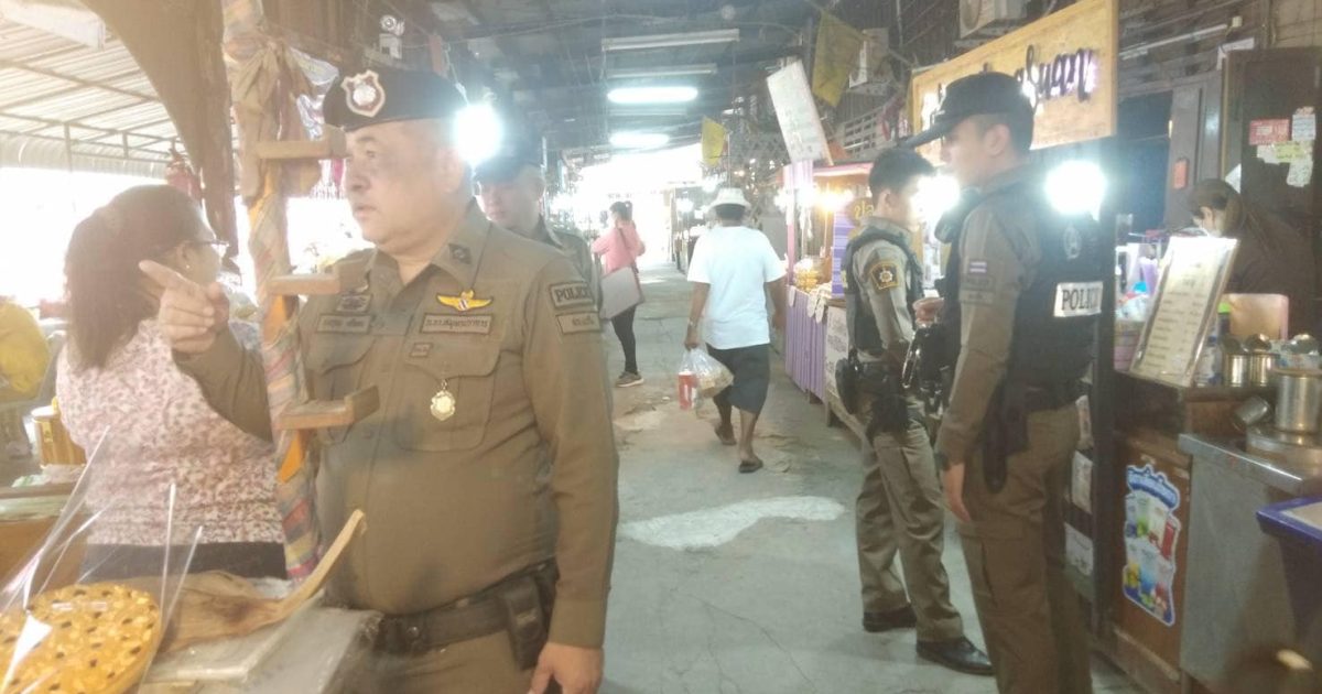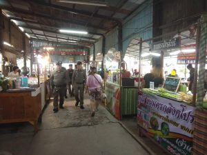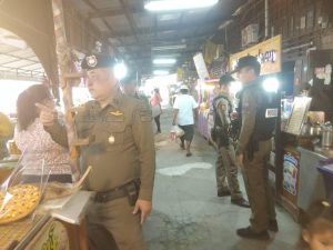 พ.ต.ท.พีรศักดิ์ เจริญพันธ์ รอง.ผกก.ป สภเปร็ง เปร็ง 20 พร้อมกำลังสายตรวจ 121 ว.4. ป้องกันเหตุ ตลาดคลองสวน100ปี