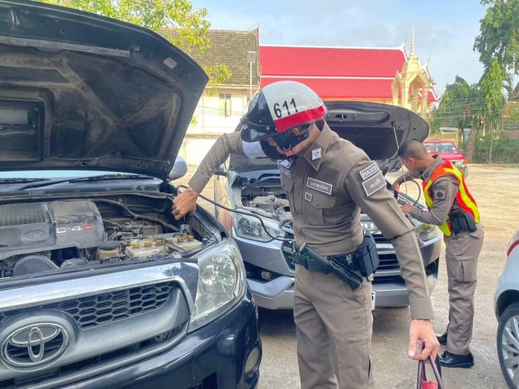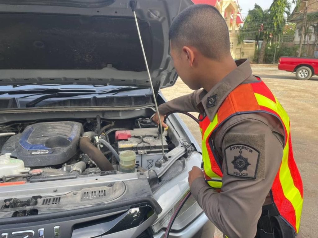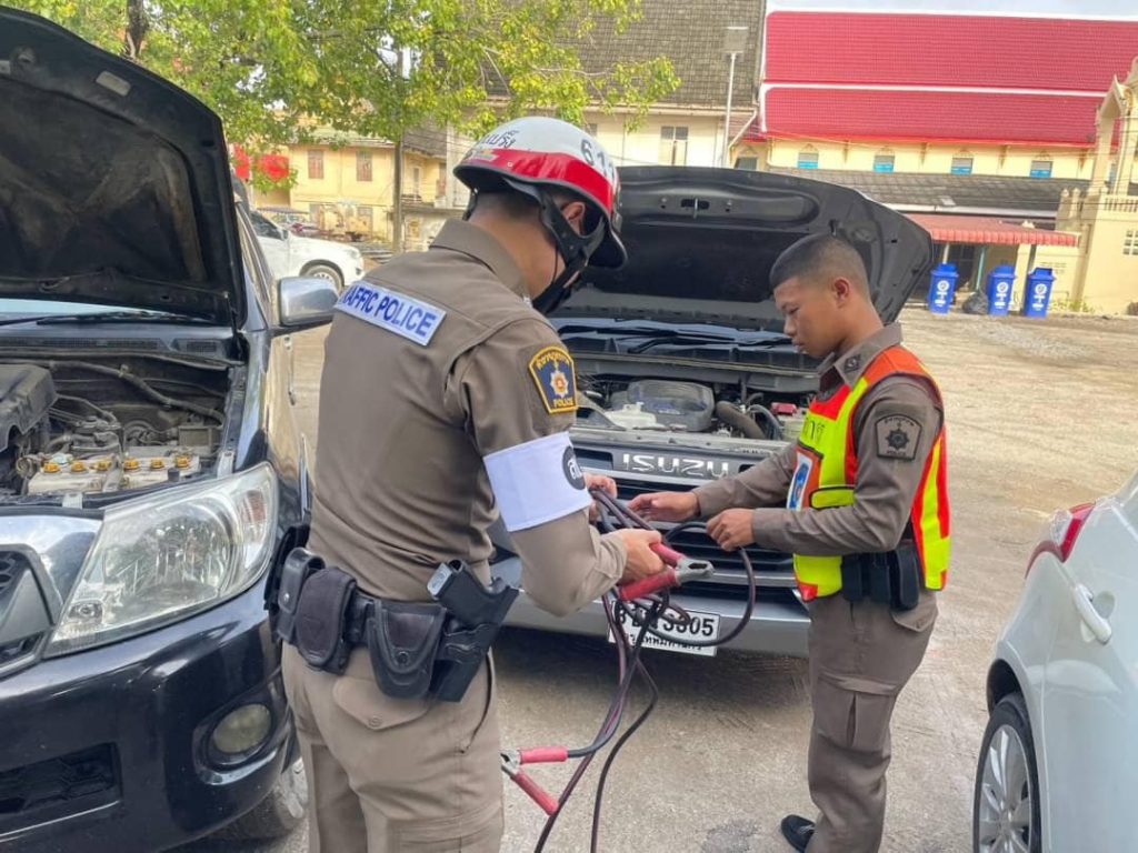 เจ้าหน้าที่ตำรวจจราจร จึงได้นำอุปกรณ์ดำเนินการให้ความช่วยเหลือประชาชน จนสามารถสตาร์ทเครื่องยนต์รถยนต์กระบะได้สำเร็จ และเดินทางต่อไปได้