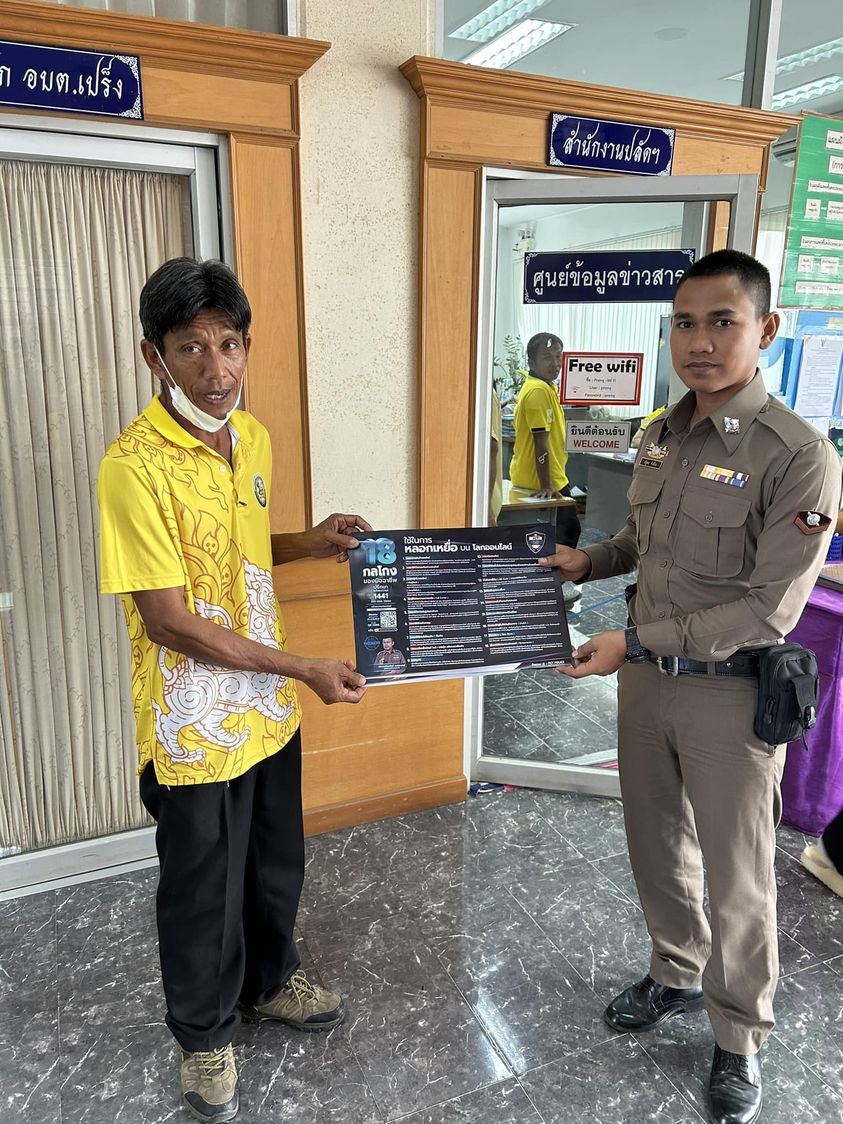 ประชาสัมพันธ์ สถานีตำรวจภูธรเปร็งร่วมกับองค์การบริหารส่วนตำบลเปร็ง ได้นำโปสเตอร์ เผยแพร่ 18 กลโกง ใช